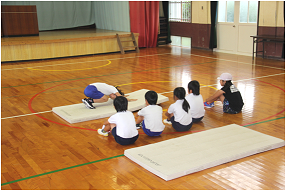 本日の体育は、水泳を予定していましたが、天候不良のため、1~4年は集会室で「マット運動」になりました。「前転」と「後転」の練習をしました。4年生になると、「開脚前転」や「開脚後転」もできます。