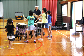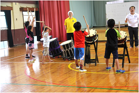 放課後子ども教室で、第3回目の太鼓教室がありました。回を重ねるごとに、みんなの息が合ってきて、すばらしい演奏になってきました。