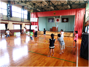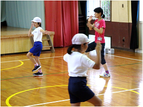 5校時、1~4年生は9月の運動会で踊るばんば踊りの練習をしました。