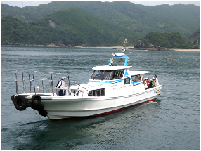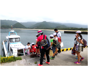 天気を心配していましたが、朝から曇り空で涼しい朝を迎えています。今日は熊野江港から船で島野浦小に行きます。楽しみにしていた活動ですので、みんな笑顔で島野浦小に向かって出発しました。