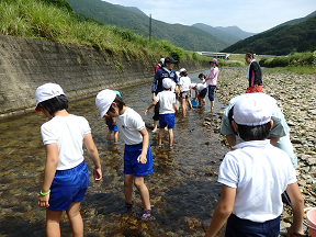 最後に行った水生生物では、きれいな川にいる生物、エビ、小魚が見つかり、子どもたちは大喜びでした。