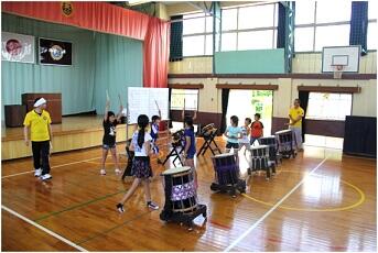 本日、放課後子ども教室で、第1回目の太鼓教室がありました。今回も「日向十五夜太鼓」の方々に教えていただきます。毎週、金曜日の計4回が予定されています。