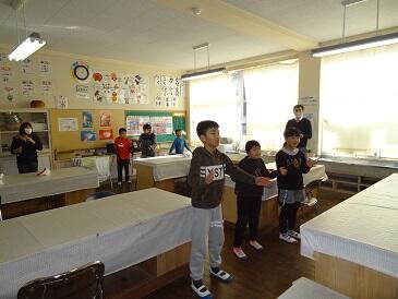 先日、子ども達の歌声が家庭科室から聞こえてきました。