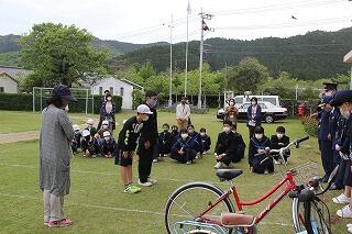 4月14日(水)、延岡警察署と交通安全協会のみなさんをお招きして、南浦中学校と合同の交通安全教室が行われました。小学校中学年は、主に道路歩行について、そして高学年と中学生は自転車の乗り方について指導を受けました。今年度から宮崎県自転車条例が改正され、保険の加入が義務づけられたり、ヘルメットの着用も努力義務となりました。それらについての説明もありました。これから、道路歩行、自転車の乗り方ともくれぐくれも気を付けていくように、子どもたちだけでなく大人もあらためて考えさせられるよい機会となりました。