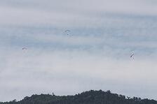 6月21日(月)は、とてもお天気のいい日でした。昼休み、校庭に出ていると、学校からはるか西の空、高速道路の通っているところよりももっと西の方かと思われる山の上あたりに何かが見えます。トンビかなとも思いましたが、ゆらゆらとゆれています。それが三つに増えて、よくみるとスカイダイビングのようでした。この日のように、たまに、学校からはだいぶ離れていますが、鏡山から離陸して熊野江海岸に降りてくる様子を見ることができます。1時間以上かけて、ゆっくりゆっくり降りてきていました。このような風景が見られるのも、熊野江小と南浦中ならではだと思われます。