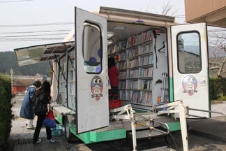 今日は児童が楽しみにしている移動図書館「ふくろう号」の日です。どの児童も両手に5冊、6冊とたくさん抱えています。ある児童は動物のシリーズを、ある児童は歴史の本をたくさん借りていました。それぞれに今はまっているものがあるようです。