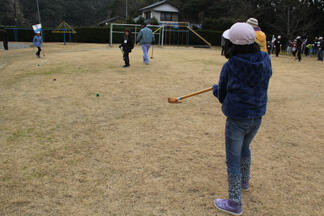 本日の土曜授業は、地域の方、保護者の方とのグラウンドゴルフでした。薄曇りの天気で、少し肌寒かったですが、30名の方に参加していただきました。一打、一打に歓声が上がり、どのグループも寒さを吹き飛ばすぐらいのハッスルプレーが続出しました。