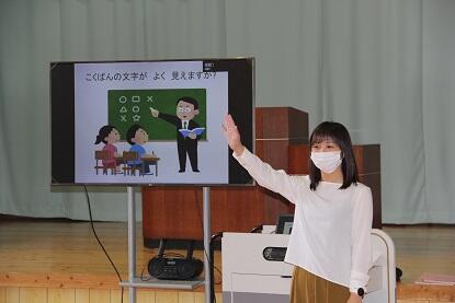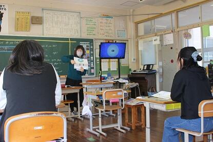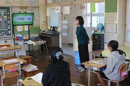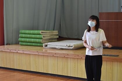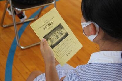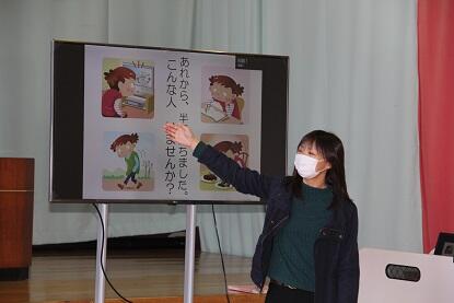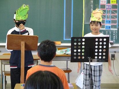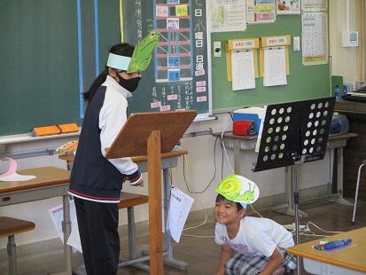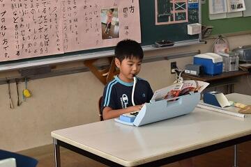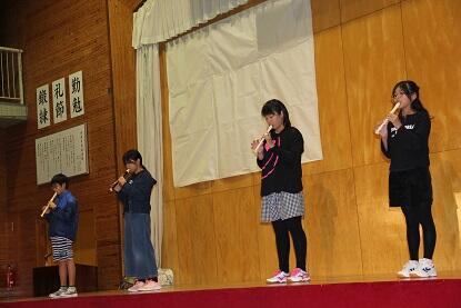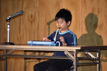 園田さんがピアニカ演奏と国語の発表を行いました。