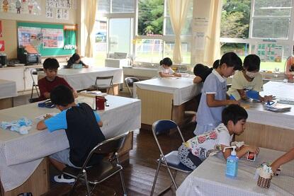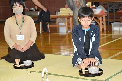 昨日(17日)の午後は久しぶりに雨となりました。5,6年生は17日と18日、南浦合同宿泊学習に参加していて不在です。(17日の登山は何とか無事できたそうです。)残った4年生以下の子どもたちは雨にも負けず元気に過ごせました。放課後子ども教室では、茶道教室がありました。