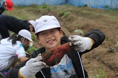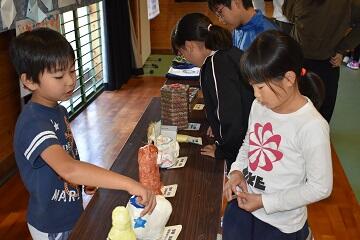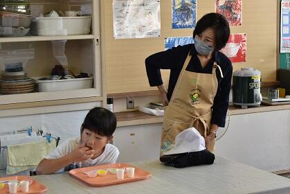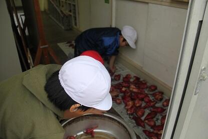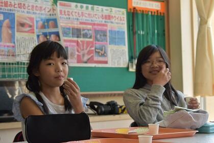 先日、5、6年生児童がリンゴの皮をむいていました。