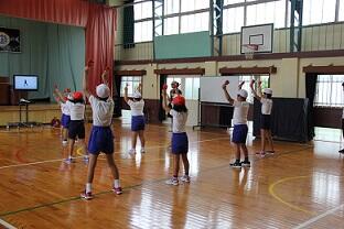 今日は雨で小中合同練習は南浦中体育館でした。小学校に帰って、集会室でラジオ体操とダンス(八木節)の練習をしました。今週は雨の日が多いので、集会室での練習が中心になると思います