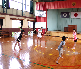 本日の放課後子ども教室で、第1回目のなぎなた教室がありました。昨年度も実施しましたが、今回、初めての子どもが4名いましたので、なぎなたの基本動作(上段、中段、下段、八相の構え)を1つ1つ丁寧に教えていただきました。