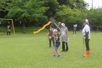 今回は、地域の皆様10名と、本校3階にあるオンライン配信教室3名の先生も参加していただき、運動場の8ホールのコースをにぎやかに回りました。