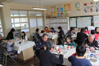 放課後子ども教室の安全管理員さんとの交流給食を計画したところ、9名の安全管理員さんが参加していただきました。