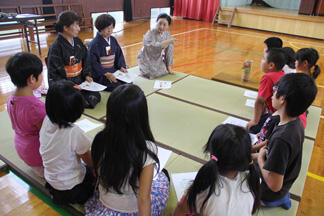 放課後子ども教室で「茶道教室」がありました。2年生以上は、ほとんどの児童が昨年度、経験していますが、1年生3名は初めての「茶道教室」です。