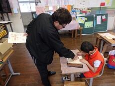 本日、延岡旭珠友会の今村 聖(きよし)先生を講師に迎えて、3・4年生のそろばん教室がありました。3年生は初めてのそろばんの勉強でしたので、数の表し方、たし方・ひき方、ひき算のやり方など、一つ一つていねいに教えていただきました。