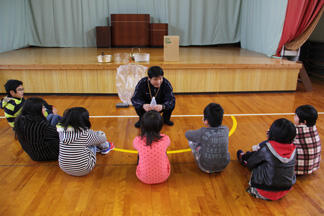 段ボールを使った空気砲、空気を暖めて飛ばすミニ気球などをしました。大成功のミニ気球に児童も興味津々で見入っていました。
