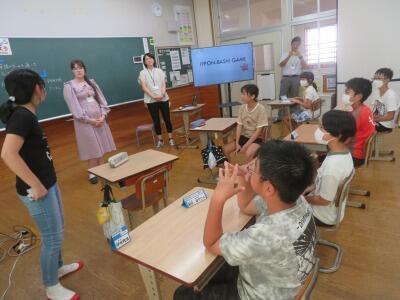 学園では、一緒に勉強をして給食を食べ、昼休みには島野浦学園の中学生も一緒に遊びました。とても楽しい一日でした。