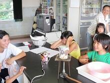 8月19日、家庭教育学級主催で、「親子おもしろ理科実験教室」が行われました。南浦中の理科の先生が「ビーカーとアルコールランプでポップコーン」と「牛乳パックと電気で蒸しパン」の作り方を教えてくれました。子どもたちは、できるかどうかドキドキしていましたが、おいしいポップコーンと蒸しパンができあがりました。