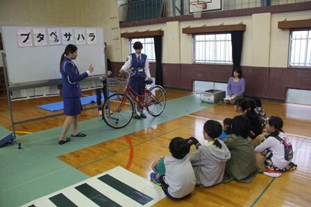 交通安全教室がありました。雨天のため屋外では実施できず、集会所で安全な道路の横断の仕方や自転車の乗り方について、学習しました。今年も交通事故”0”を目指します。