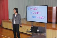 校長先生からは、熊野江小学校の校訓「汗いっぱい、心いっぱい、知恵いっぱいの熊小っ子」について、そして延岡市の推進する「幸動」について話がありました。その中でこんな子ども達になってほしいという願いが伝えられました。