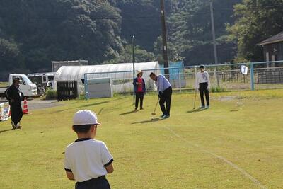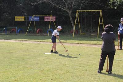 地域の皆様を招待してのふれあい活動「グラウンドゴルフ大会」を実施しました。本校児童数の倍以上の人数が集まり、にぎやかにグラウンドゴルフを楽しみました。