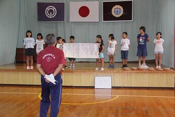 放課後子ども教室の時間に、敬老会余興の練習を行いました。