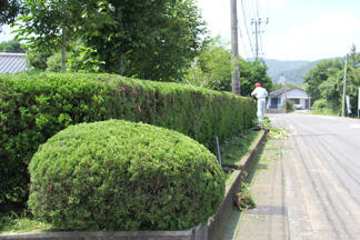 本日(24日)、市内小中学校の学校技術員さんによる生垣の剪定作業をしていただきました。 作業が進むごとに生垣が刈り揃えられ、どんどんきれいになっていきます。