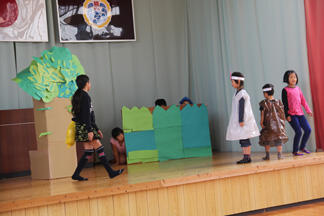 ふるさと祭りに向けて、劇の練習が始まっています。劇の配役も決まり、自分の台詞を覚えている段階です。劇の背景もみんなで作ります。学年に応じて、自分ができる作業に真剣に取り組んでいます。11月1日(日)のふるさと祭りでは地域の皆様にすばらしい劇を披露したいと思いますので、ご期待ください。