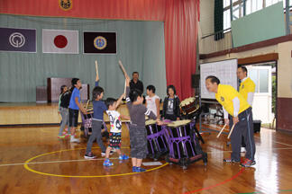 第4回目の和太鼓教室が行われました。ふるさと祭りに向けて「日向十五夜太鼓」の方々と一緒に演奏の仕上げを行いました。先生方のあたたかな指導のもと、とても楽しく練習を重ねてきました。