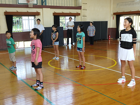 本日は、集会室で行進とダンスの練習をしました。ダンスについては、夏休み中も練習していた子どももおり、ほとんどの子どもがダンスの振りをしっかり覚えていました。