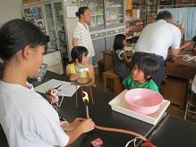 8月19日、家庭教育学級主催で、「親子おもしろ理科実験教室」が行われました。南浦中の理科の先生が「ビーカーとアルコールランプでポップコーン」と「牛乳パックと電気で蒸しパン」の作り方を教えてくれました。子どもたちは、できるかどうかドキドキしていましたが、おいしいポップコーンと蒸しパンができあがりました。