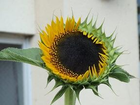 高さが2m近くになり、やっとひまわりの花が咲きました。