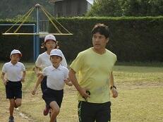走る距離は低学年600m、中学年800m、高学年1000mです。初めに全員で運動場を2周走って体をほぐした後、各学年ごとにタイムを計りました。
