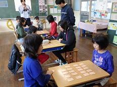 本日の土曜授業は、ふれあい活動でした。 予定ではグラウンドゴルフを行うつもりでしたが、雨天のため、集会室で伝承遊びになりました。
