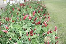 熊野江小のいいところ紹介、第2弾も花についてです。今回は、藤の花とクリムゾンクローバー(ストロベリーキャンドル)です。熊野江小学校は、本当に花がいっぱいです。