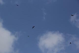 普通、トンビはペアでいますが、このサシバは群れになって飛んでいることが多いようです。そして、トンビと比べると、かなり高いところをとんでいます。サシバは、渡り鳥で、これから南に向かって渡る準備をしているところのようです。澄み切った青空を、ここ数日、悠々と風に乗って飛んでいます。