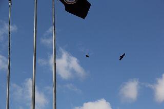 熊野江小学校周辺にはいつもトンビがいて、いい声で鳴いています。身近に見慣れたトンビです。そのトンビが、先月の月末近くになって、随分高いところを群れになって飛んでいるのが見られるようになって、「いつもと違うな。」と思っていたら、それは、サシバという別の鳥だとわかりました。