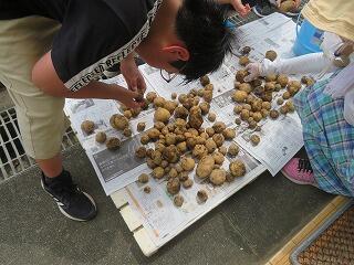 今年も、じゃがいもの収穫を無事行うことができました。学校の畑に植えたじゃがいもが元気に顔を出します。子供達は、掘り出したたくさんのじゃがいもに笑顔でした。