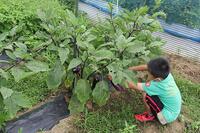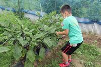 ※その後、食材を学校園に取りに行きました。どのなすが大きく、おいしそうかな?!