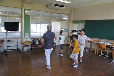 地域に伝わる熊野江音頭、もう知る人は少ないとのことでしたが、地域学校協働活動支援員さんは、歌も歌うことができ踊りも覚えているということで、教えてもらいました。
