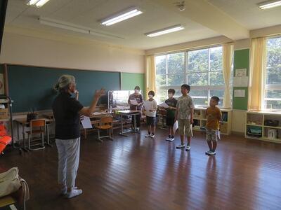 地域に伝わる熊野江音頭、もう知る人は少ないとのことでしたが、地域学校協働活動支援員さんは、歌も歌うことができ踊りも覚えているということで、教えてもらいました。