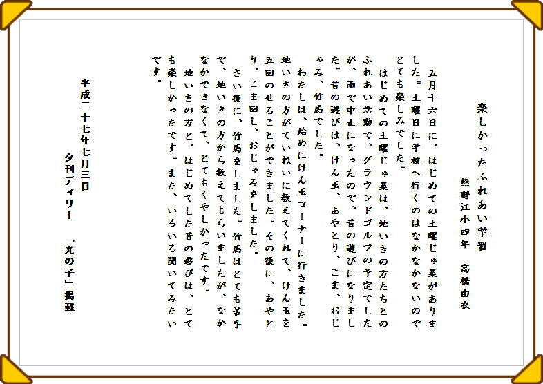 本Webページの著作権は、熊野江小学校が有します。無断で、文章・画像などの複製・転載を禁じます。