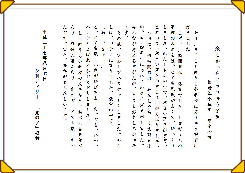 本Webページの著作権は、熊野江小学校が有します。無断で、文章・画像などの複製・転載を禁じます。