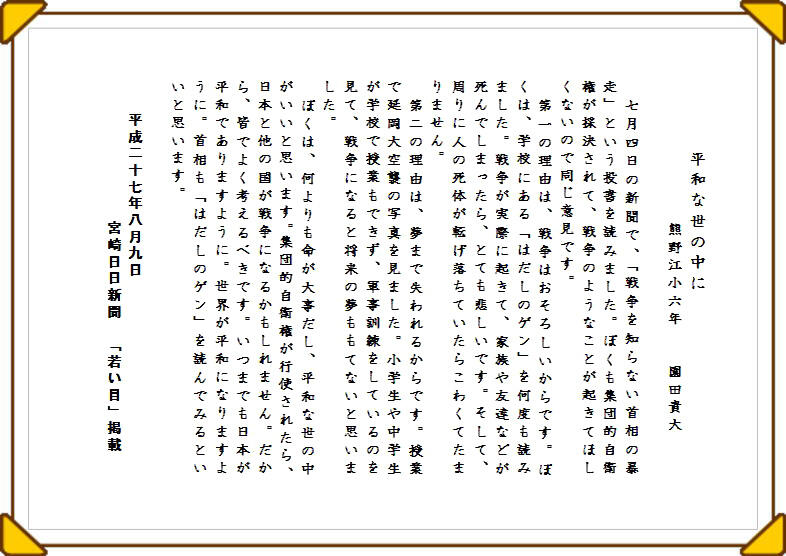 くまのえ作品紹介 ~ 熊野江小学校児童の作品です ~
