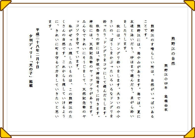 くまのえ作品紹介 ~ 熊野江小学校児童の作品です ~
