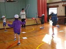 3学期、第1回の体育は見学者がいて、4名での体育でした。本日の集会室は気温が低く、前半は上着を着てやっていましたが、後半は上着を脱いで、元気いっぱいに活動していました。