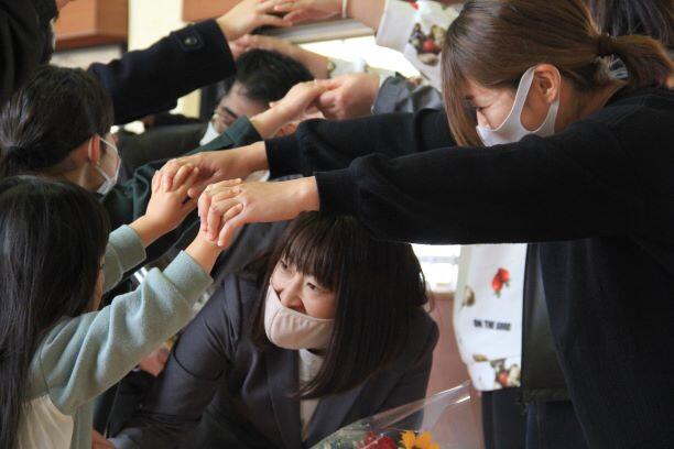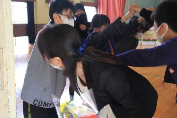 熊野江小を離れる4名の先生方、大変お世話になりました。