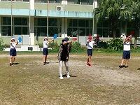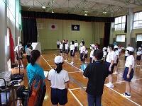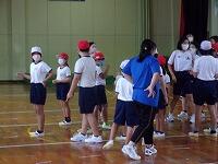 生憎の雨で、運動場での練習ができず、体育館での練習となりました。