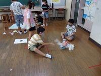 2年生は、1年生といっしょに活動するためのおもちゃをこれまで作ってきました。そして今日、1年生に遊び方を教えながら、いっしょに楽しく活動しました。